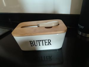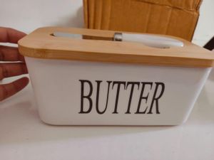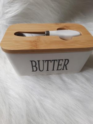 Ceramic Butter Container with Knife & Bamboo Lid for Kitchen Storage